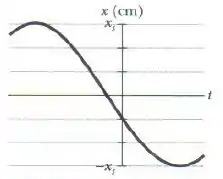 Qual é a constante de fase do oscilador harmônico cuja função posição aparece na figura se a função posição é da forma ? A escala do eixo vertical é definida por .