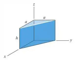 Determine por integração direta o produto da inércia para o prisma homogêneo. A densidade do material é ρ. Expresse o resultado em termos da massa total m do prisma.