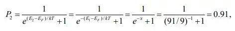 Um estado 63 meV acima do nível de Fermi tem uma probabilidade de ocupação de 0,090. Qual é a probabilidade de ocupação de um estado de 63 meV abaixo do nível de fermi ?