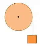 A grande sacada nessa questão é perceber que teremos uma transferência de energia conforme o peso cai, fazendo com que a roda gire. Deste modo, vamos conseguir resolver essa questão usando a conservação da energia.