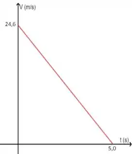 Numa estrada seca, um carro com pneus em bom estado é capaz de frear com uma desaceleração de 4,92 m/s² (suponha constante). (a) Viajando inicialmente a 24,6 m/s, em quanto tempo esse carro consegue parar? (b) Que distância percorre nesse tempo? (c) Faça os gráficos x versus t e v versus t, para a desaceleração.