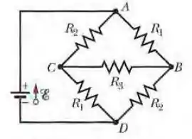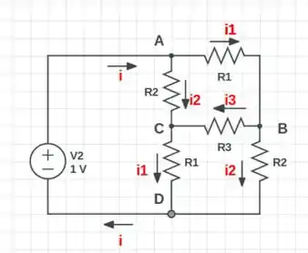 Primeiramente, como o circuito é simétrico temos que as correntes em cima dos dois resistores vão ser e o mesmo acontece com os resistores com correntes .