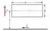 Na Fig. 30-54, uma espira retangular de comprimento , largura e resistência é colocada nas vizinhanças de um fio infinitamente longo percorrido por uma corrente . Em seguida, a espira é afastada do fio com uma velocidade constante . Quando o centro da espira está a uma distância do fio, determine (a) o valor absoluto do fluxo magnético que atravessa a espira e (b) a corrente induzida na espira.