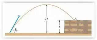Na Fig. 4 -34, uma pedra é lançada no alto de rochedo de altura com uma velocidade inicial de e um ângulo com a horizontal . A pedra cai em um ponto , após o lançamento. Determine :
