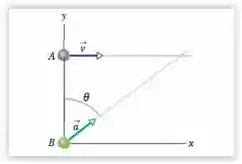 Na Fig. 4-32, a partícula se move ao longo da reta com uma velocidade constante de módulo e paralela ao eixo . No instante em que a partícula passa pelo eixo , a partícula deixa a origem com velocidade inicial zero e aceleração constante de módulo . Para que valor do ângulo entre e o semieixo positivo acontece uma colisão?