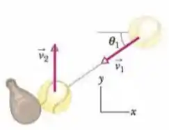 A Fig. 9-51 mostra uma bola de beisebol de imediatamente antes e imediatamente depois de colidir com um taco. Imediatamente antes, a bola tem uma velocidade de módulo e ângulo . Imediatamente depois, a bola se move para cima na vertical com uma velocidade de módulo . A duração da colisão é . Quais são (a) o módulo e (b) a orientação (em relação ao semieixo positivo) do impulso do taco sobre a bola? Quais são (c) o módulo e (d) o sentido da força média que o taco exerce sobre a bola?
