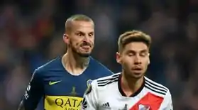 Bom, como temos simetria entre o arco positivo em cima e o arco negativo embaixo, muitas componentes se cancelam até restarem apenas essas duas.