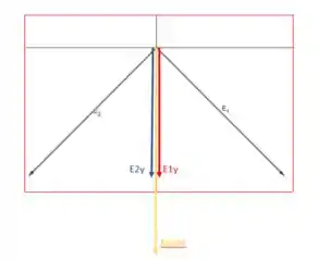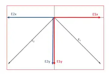O módulo do campo total será dado apenas por uma componente em y, já que as componentes em x se cancelam devido aos vetores e serem iguais em módulo e terem componentes em x iguais ( se cancelam):