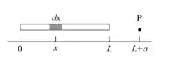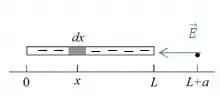 Assim a barra se comporta como uma carga pontual, como podemos ver no desenho, a distância é tão grande, que o tamanho da barra já não interfere