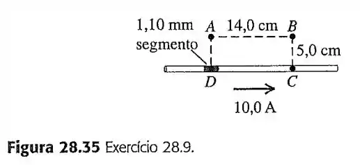 9- Um fio retilíneo transporta uma corrente de (Figura ). é um retângulo com um ponto no meio de um segmento de do fio e um ponto no fio. Determine o módulo, a direção e o sentido do campo magnético produzido por esses segmento.