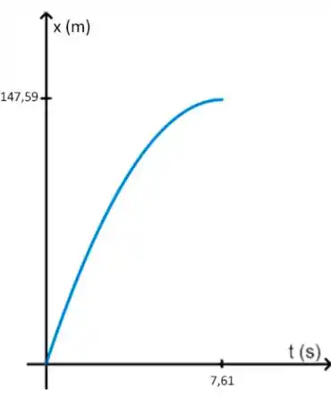 Perfeito! Percebe como isso não é nada mais do que uma equação do segundo grau? Esse gráfico nós conhecemos como uma parábola. Como só nos interessamos no movimento até a parada completa do veículo, só precisamos esboçar metade dessa parábola.