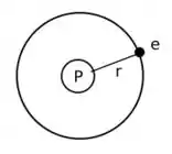 O que nós temos aqui é o próton “P” fazendo o papel da terra e o elétron “e” fazendo o papel da Lua.