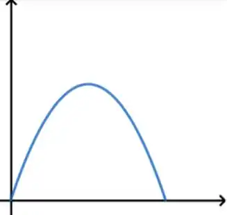 Bom, o que eu quero que você perceba é que isso nada mais é do que uma equação do segundo grau, cujo gráfico conhecemos como uma parábola. Repare que o t² acompanha um número negativo, o que já nos permite concluir que a parábola terá concavidade voltada para baixo. Além disso, se substituirmos ali, obteremos como resultado , isso significa que o gráfico parte da origem. Portanto, nosso primeiro esboço vai ficar assim: