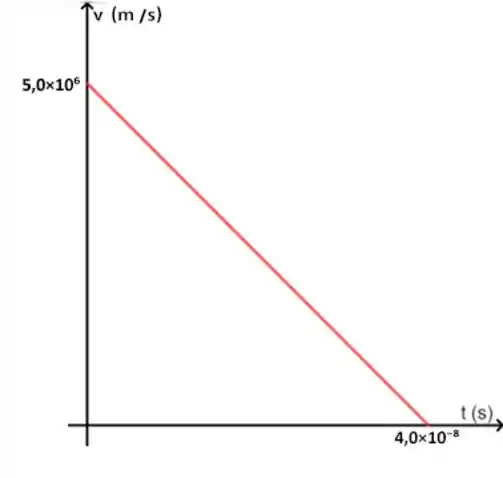 Um múon (uma partícula elementar) entra num campo elétrico com uma velocidade de m/s, onde é desacelerado à razão de m/s². (a) Que distância o múon percorre até parar? (b) Faça os gráficos x versus t e v versus t para o múon.