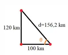 Para determinar o rumo que o navio deve tomar para alcançar o porto podemos determinar um ângulo o triângulo retângulo que ilustramos acima.