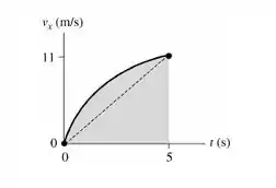 Se a aceleração fosse uniforme, o que não é, o gráfico seria uma linha reta. A área abaixo do gráfico é o deslocamento . A partir da figura, você pode ver que para um gráfico linear. Mas sabemos que, na realidade, . Para obter um maior, o gráfico deve aumentar para cima acima da linha reta. Assim, o gráfico é curvado e côncavo para baixo.