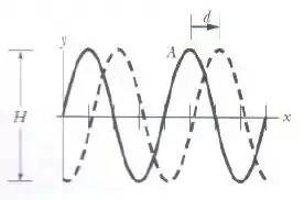 Saca só, nesse exercício o enunciado nos deu uma onda senoidal que se propaga em uma corda em dois momentos diferentes, antes e depois que o pico se desloque de uma distância no sentido positivo de um eixo em .