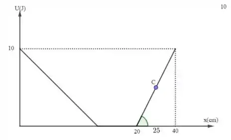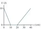 Uma partícula possui a energia potencial representada na FIGURA EX11.18. Qual é o componente x da força exercida sobre a partícula em x = 5 cm, 15 cm, 25 cm e 35 cm?