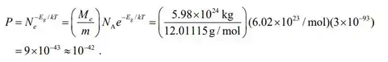 Saalve galerinha, tudo certo? Bem, vamos lá meus pequenos Einsteins! A massa molar de carbono é m = 12,01115 g/mol e a massa da Terra é Me = 5,98 × 10^24 kg. Assim, o número de átomos de carbono de um diamante tão maciço como a Terra é N = (Me/m)NA, onde NA é a constante Avogadro. A partir do resultado do problema da amostra 41-1, a probabilidade em questão é dada por
