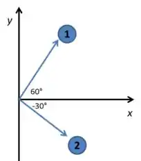 Oi, galerinha! Tudo bom? Segundo o enunciado a direção do movimento do próton 1 é e a direção do movimento do próton 2 , por sua vez ,é , uma vez que suas trajetórias são perpendiculares. Vamos desenhar para visualizar melhor!