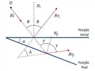 Assim, se o ângulo de rotação for de 45 o, o raio refletido girará em 90 o.