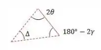 A partir disso, vamos analisar o triângulo formado pelos prolongamentos dos raios refletidos: