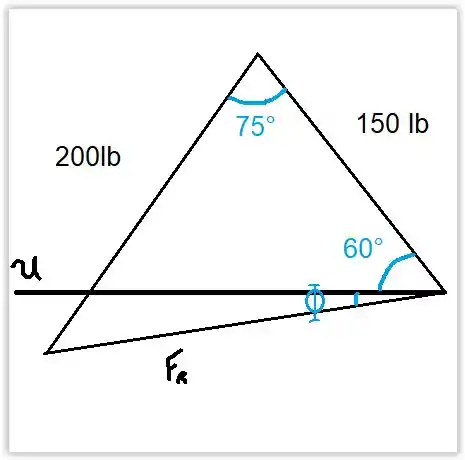 Repare que , onde esse Φ é o ângulo da força resultante medida no sentido anti-horário de u