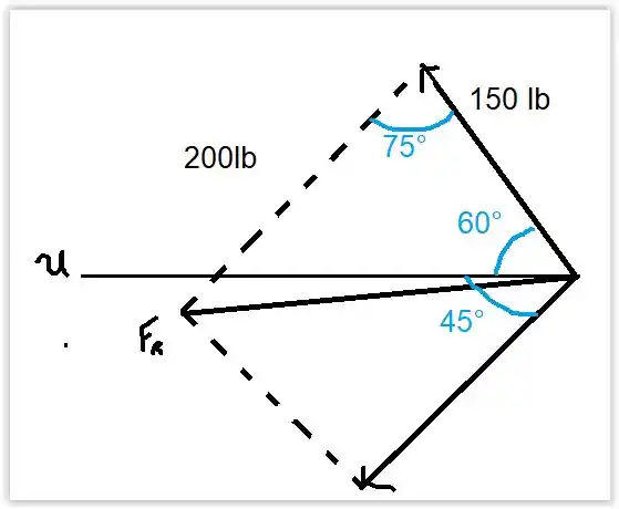 Repare que as forças são vetores, e para soma-los usaremos a lei dos cossenos.