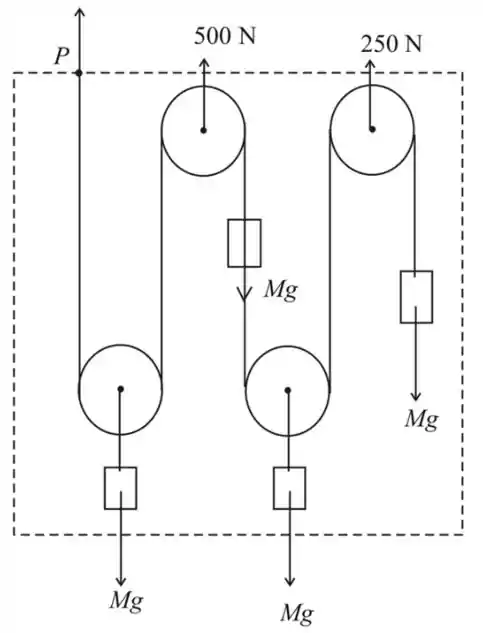 Forças gravitacionais em cada polia