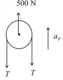 Numerando as polias como 1, 2, 3, 4, considerando os diagramas de corpo livre da polia número 2 para esta polia é