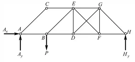 Uma vez que todas as forças na treliça podem ser determinadas e é igual a 2n. A treliça é completamente restrita e determinada.