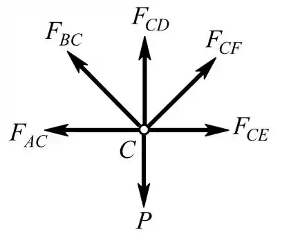Na junta C, as forças nos membros são desconhecidas e muitas. Sendo assim, as forças em todos os membros não podem ser calculadas.