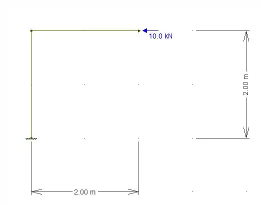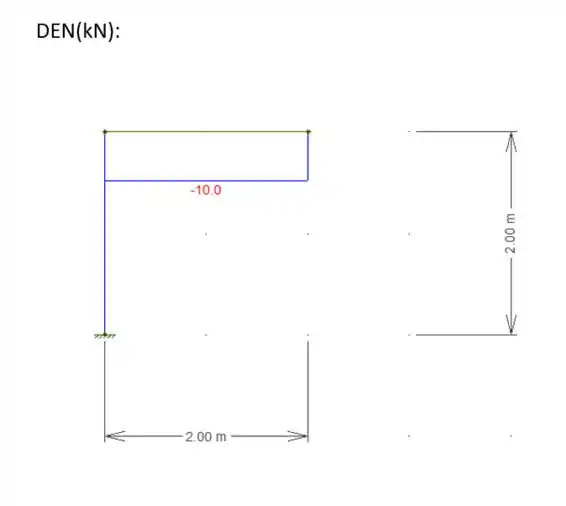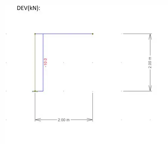 Temos um pórtico, como uma carga de aplicada na extremidade da viga. Se formos montar o diagrama de esforço normal e cisalhante desse pórtico teríamos: