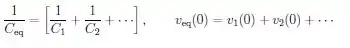Determine o circuito equivalente para uma ligação em série de capacitores ideais. Suponha que cada capacitor tenha sua própria tensão inicial. Denote essas tensões iniciais por v1(t0), v2(t0) e assim por diante. (Sugestão: some as tensões dos capacitores reconhecendo que a ligação em série obriga a corrente em cada capacitor a ser a mesma.)