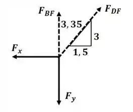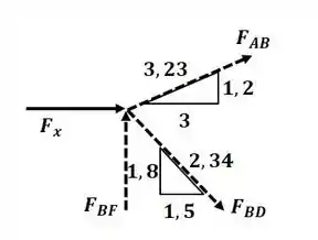 Aplicando semelhança de triângulos entre os triângulos de força e de comprimento, temos: