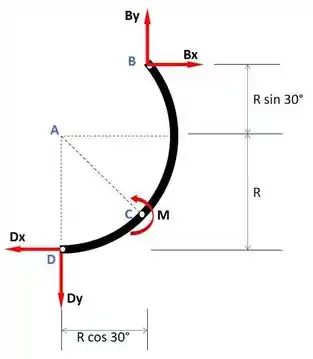 Agora vamos analisar . Aplicando equações de equilíbrio, usando a equação , podemos resolver para :