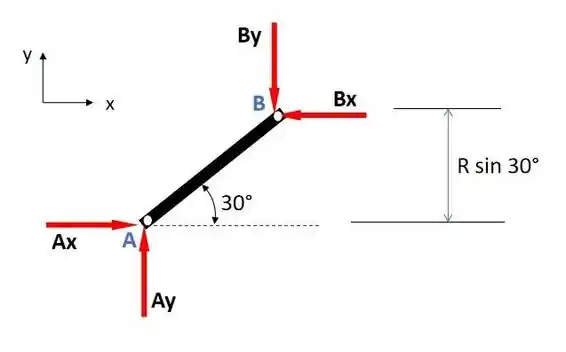 Agora, vamos isolar e desenhar o diagrama de corpo livre de . Assim também teremos equações para .