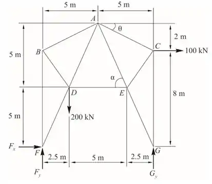 Determine as forças nas barras AB e AD da treliça da figura