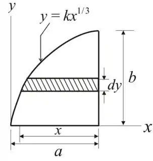 Determine, por integração direta, o momento de inércia da superfície sombreada, em relação ao eixo de x.