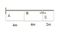 Determine as linhas de influência das reações de apoio e dos esforços nas seções A, B C indicadas nas vigas esquematizadas na figura abaixo.
