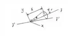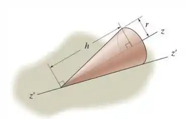Determine o momento de inércia do cone em relação ao eixo z'. O peso do cone é 15 lb, a altura é h = 1,5 pés e o raio é r = 0,5 pés.