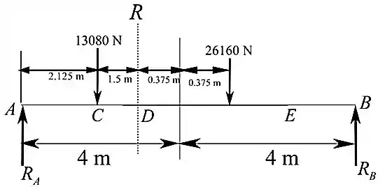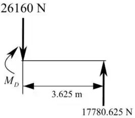 Agora iremos calcular o momento em D sob a carga de 13080 N como mostrarei a seguir: