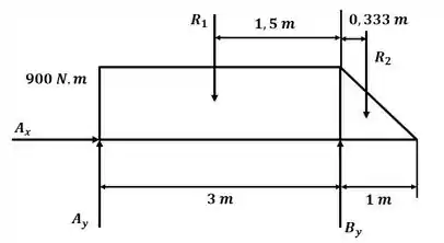 Agora, aplicando o somatório de momento com relação ao ponto podemos descobrir o valor da reação na direção no ponto :