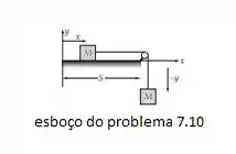 Dois blocos, cada um com massa M, sâo conectados por um fio sem extensão, uniforme, de comprimento l. Um bloco é posicionado em uma superfície horizontal lisa, e o outro é suspenso pela lateral, e o fio passa por uma polia sem fricção. Descreva o movimento do sistema (a) quando a massa do fio for irrelevante e (b) quando o fio tiver uma massa m.