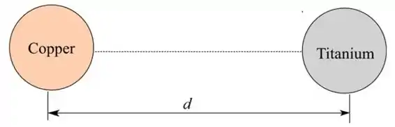 A distância entre a esfera de cobre e a esfera de titânio, .