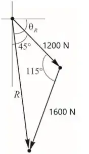 Desenhando o triângulo de força pela regra do triângulo como mostra a seguir
