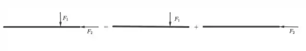 Na figura acima, vemos que o efeito conjunto das forças e é igual a soma dos efeitos de e sendo aplicados individualmente na barra.