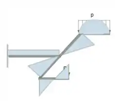 O esboço do diagrama será feito em uma estrutura semelhante a da viga apresentada. Em um primeiro momento iremos analisar o esboço do diagrama de momento de torção, como a força está sendo aplicada nas pontas do sistema, temos o momento de torção acontecendo na barra intermediária, de modo que atigirá o ponto máximo nos pontos da barra e será zerado no ponto de encontro com a barra fixada.