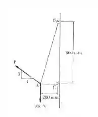 Na FIG P2.42, dois cabos estão atados no ponto A, sujeito a uma carga de 960N. Sabendo que , determine a tração em cada cabo.