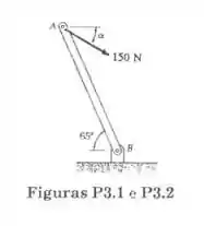 Uma força de 150 N é aplicada à alavanca de controle AB, como ilustrado. O comprimento da alavanca é igual a 0,20 m e . Determine o momento da força em relação a B decompondo a força (a) em componentes horizontal e vertical e (b) em uma componente ao longo de AB e em outra perpendicular a AB.